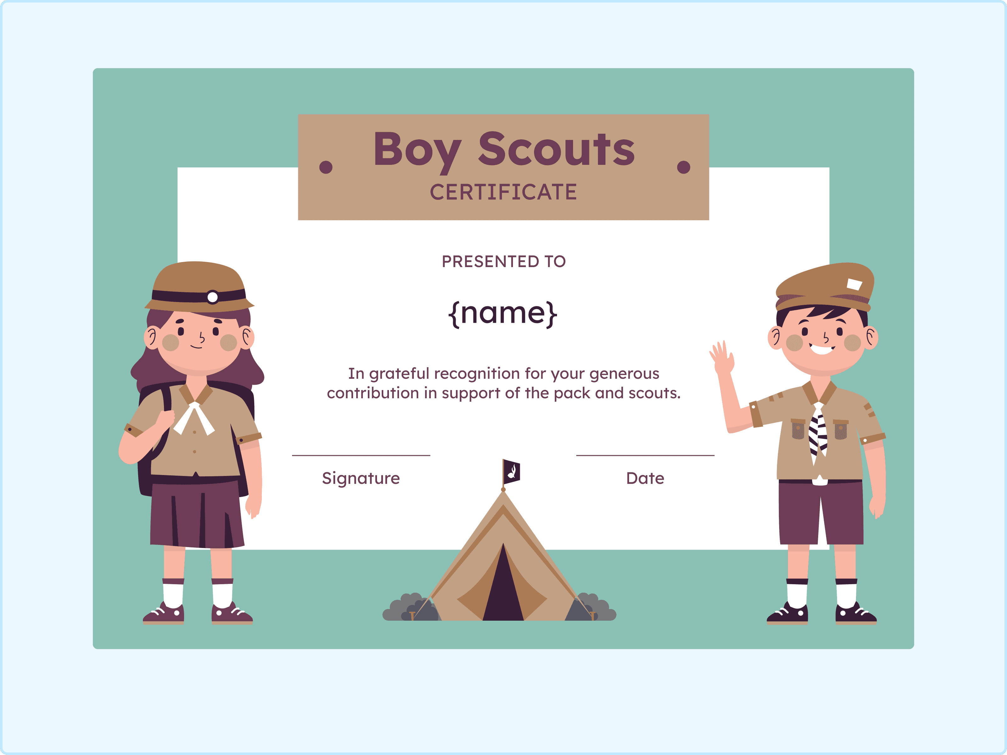 Scout Camp Volunteer Certificate Template