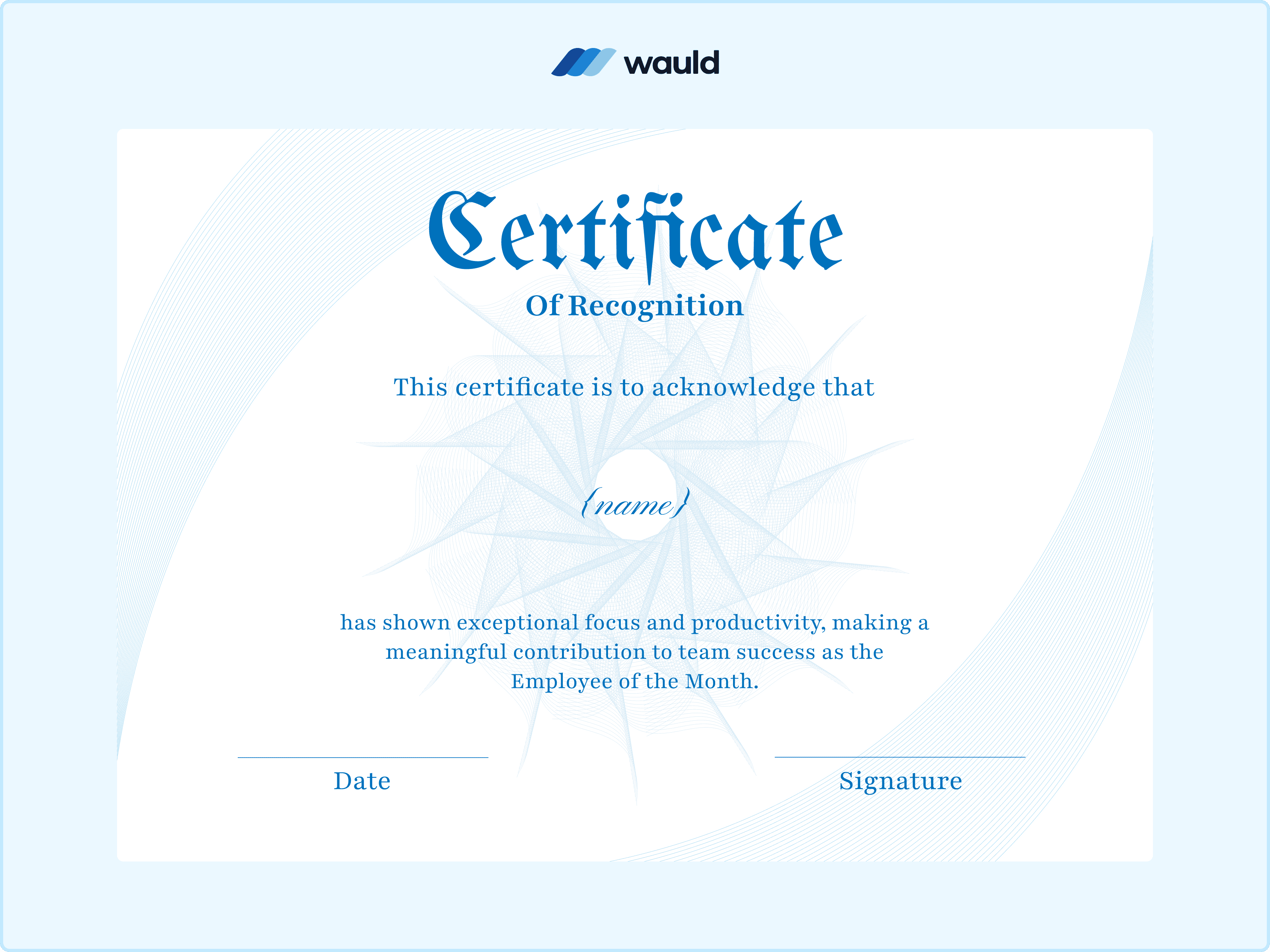 A certificate today isn’t just a printed document; it’s a digital moment of recognition. It marks achievement, boosts motivation, and quietly strengthens team culture. With Wauld, creating and sharing these moments becomes simple, seamless, and a natural part of everyday workplace learning with easy-to-use, free certificate templates.