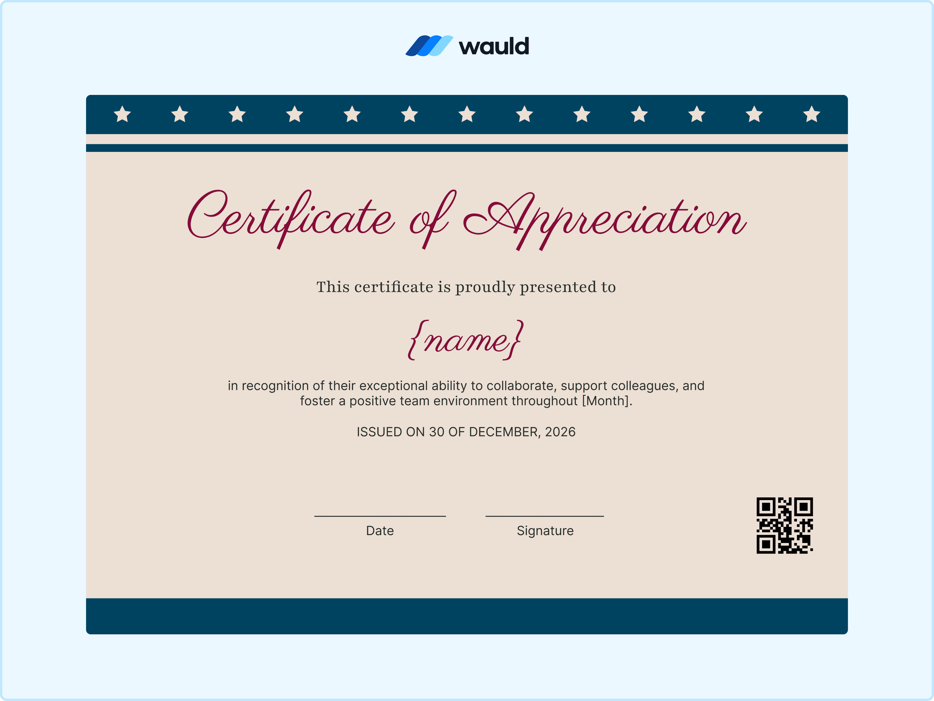 In this blog, we’ll explore over 10 certificate of appreciation templates on Wauld and their uses, their significance, and how they can strengthen workplace culture without adding complexity.