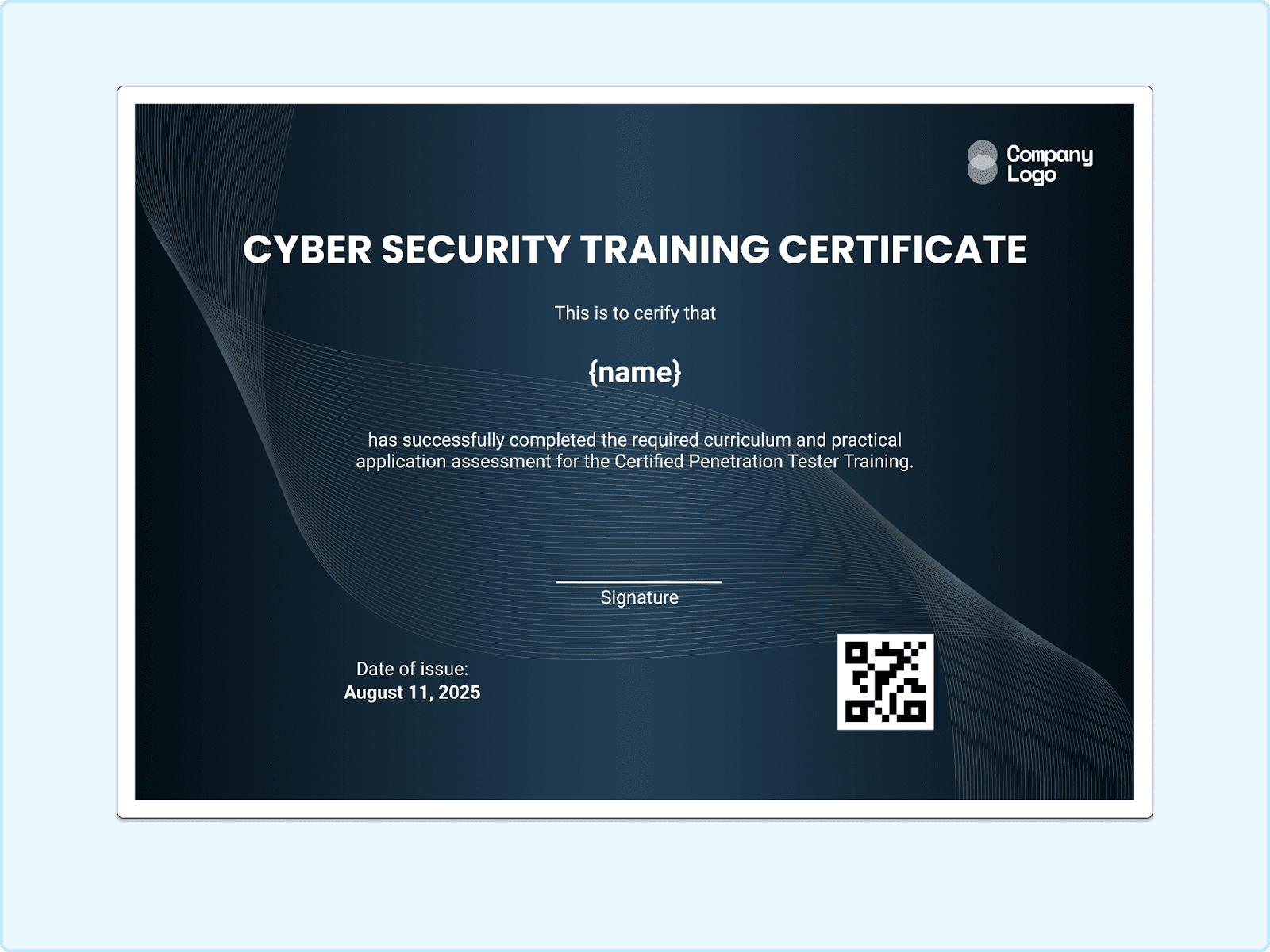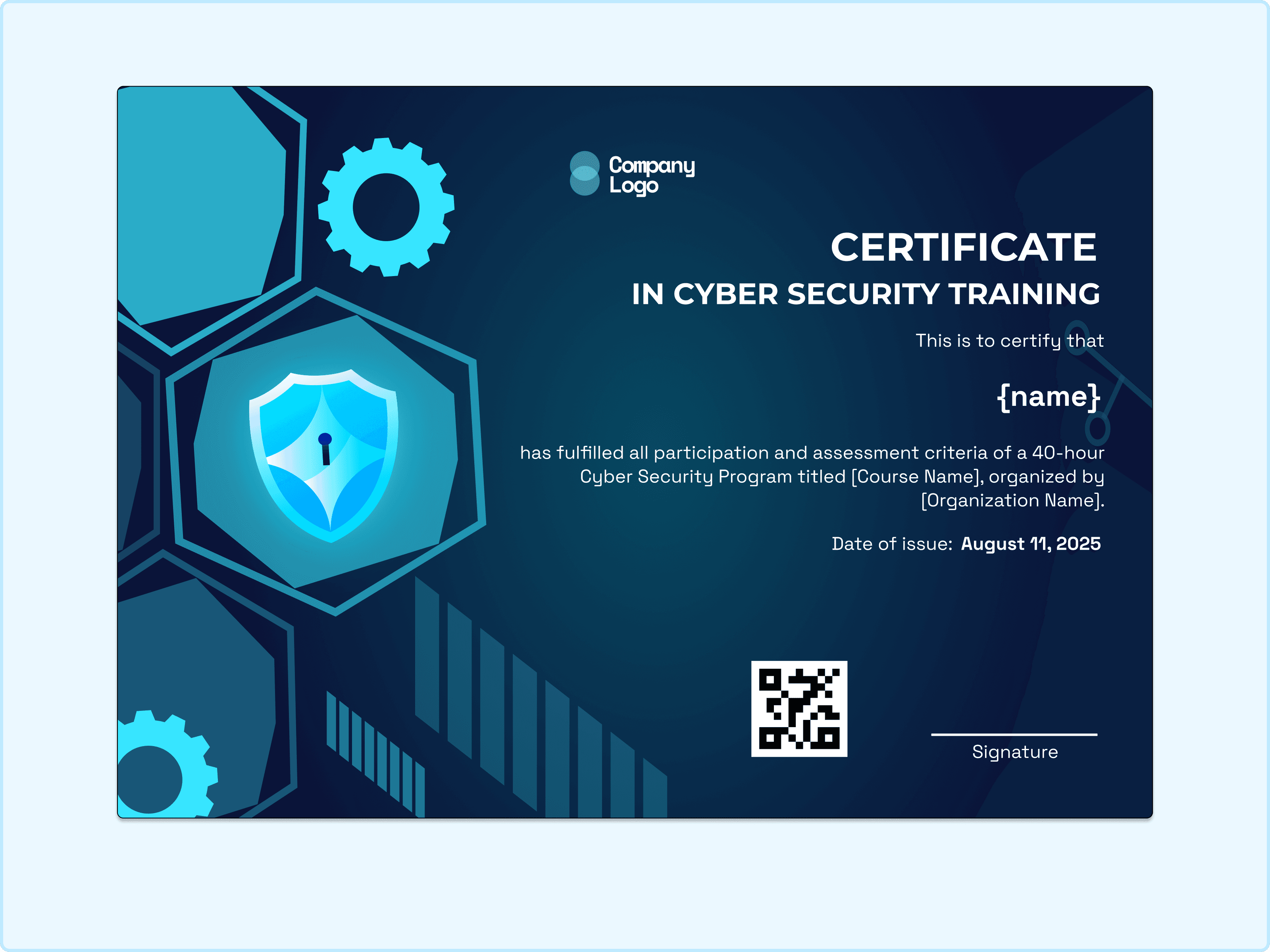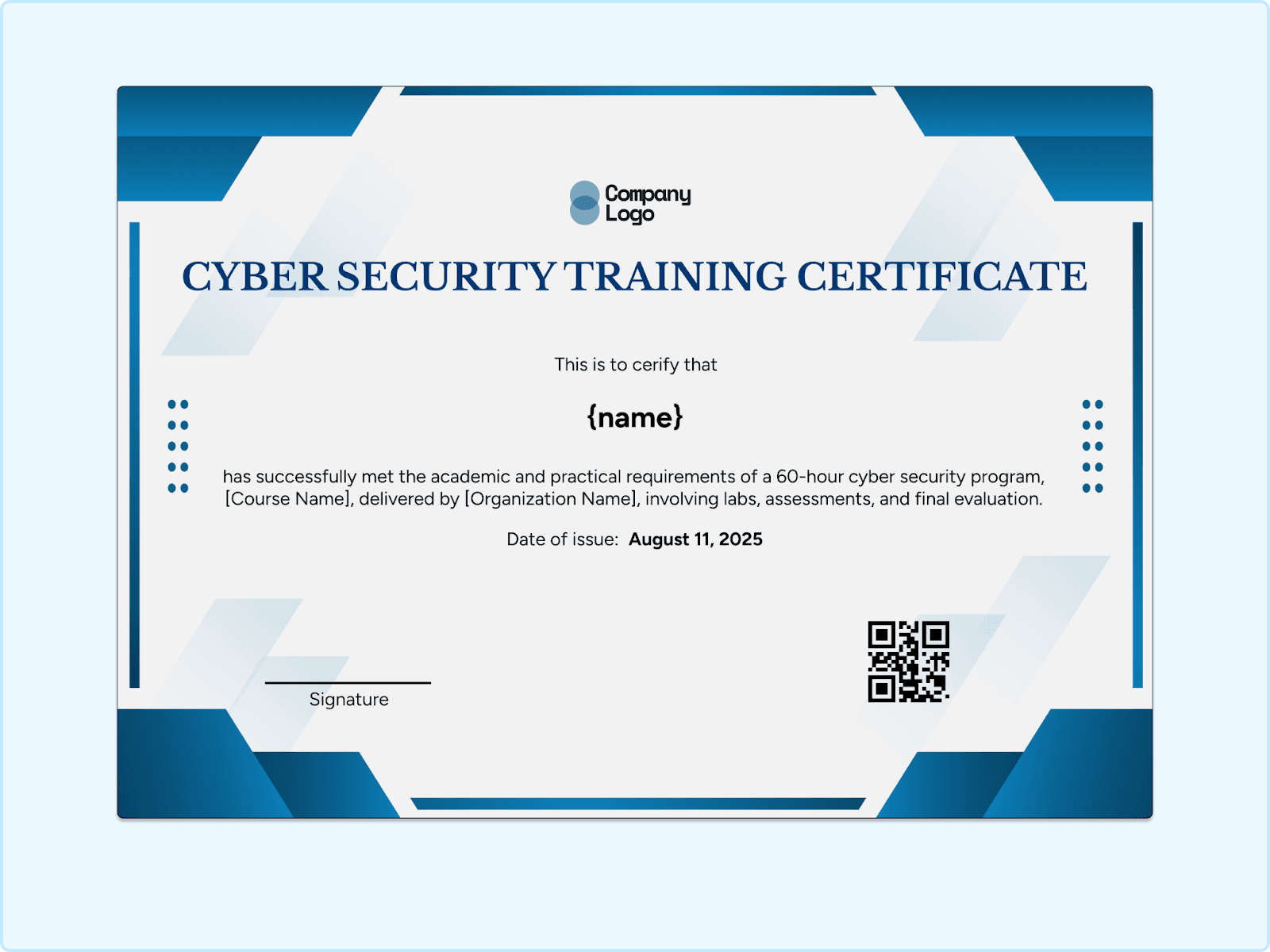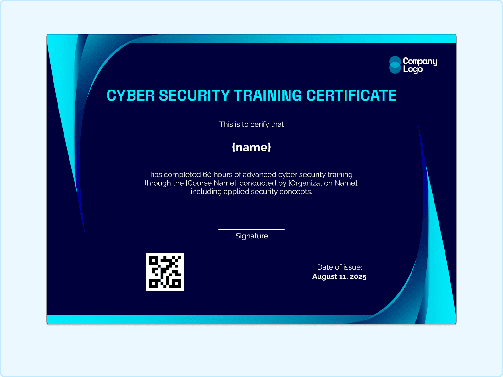 Design also plays an important role in how a certificate is perceived. Clean, well-structured layouts tend to inspire more confidence than flashy or overly decorative designs. In cybersecurity especially, simplicity and clarity matter. A serious, professional look reflects the responsibility that comes with handling security-related work.
