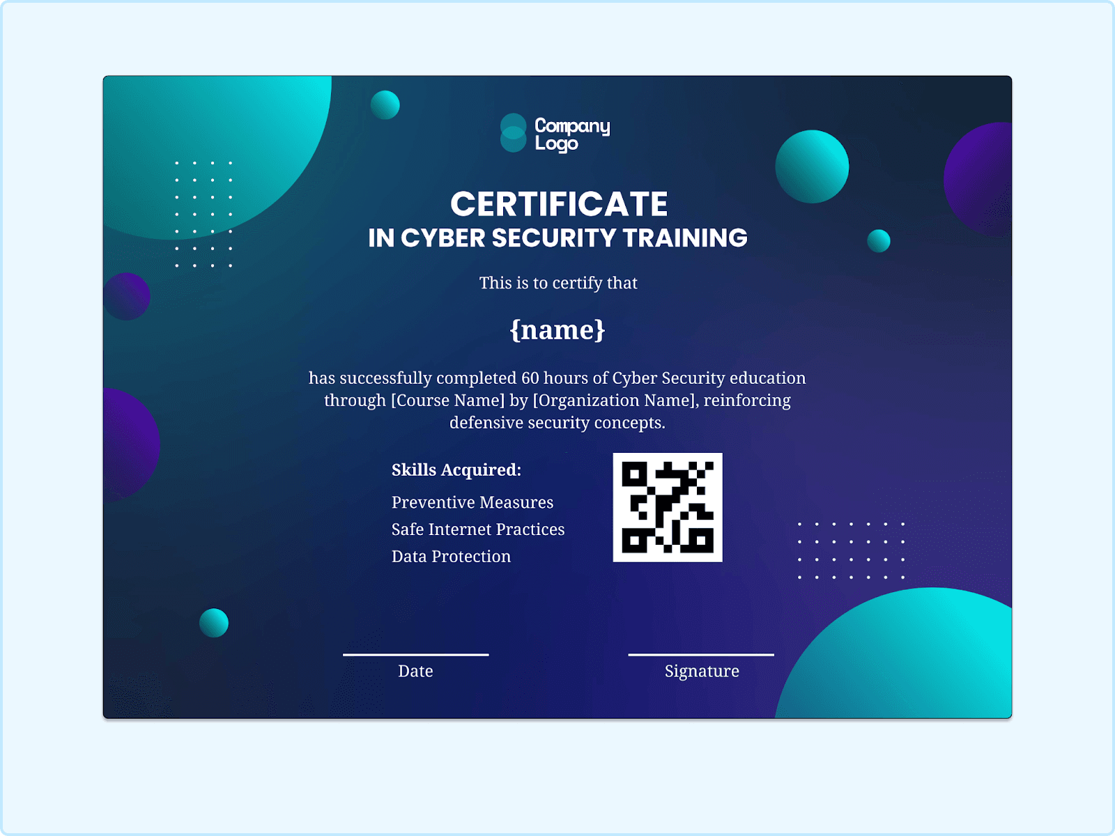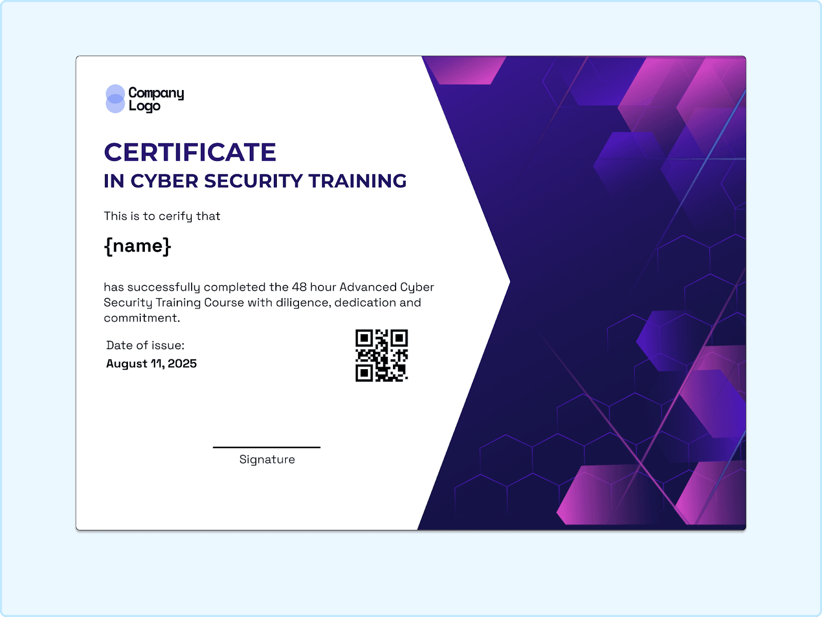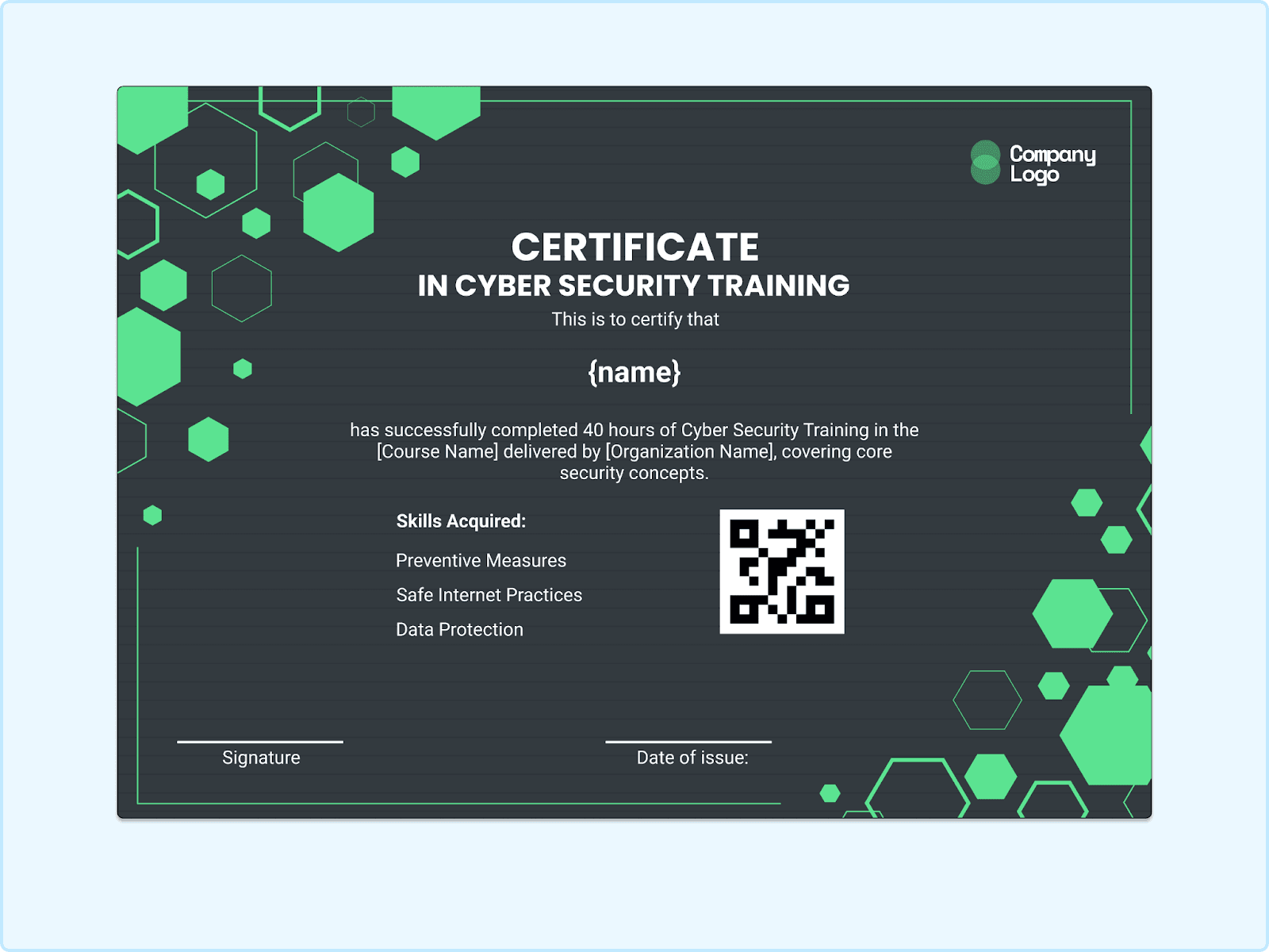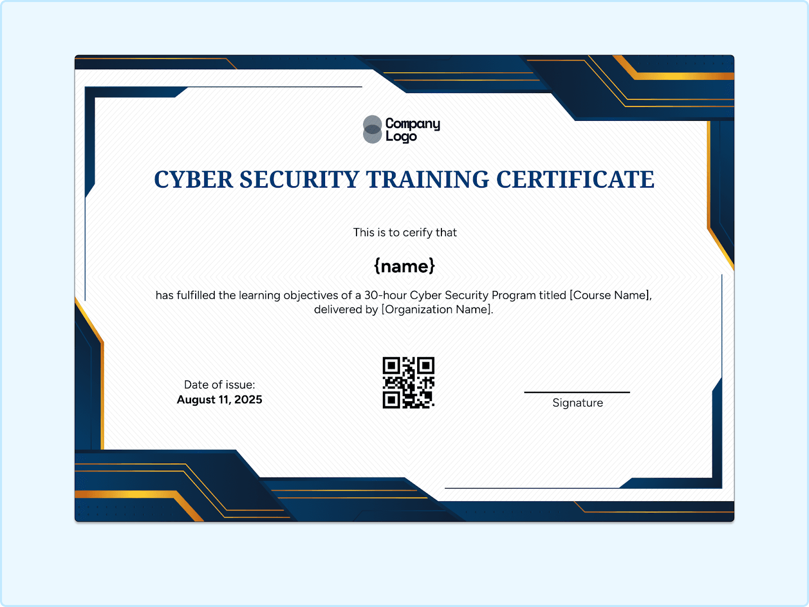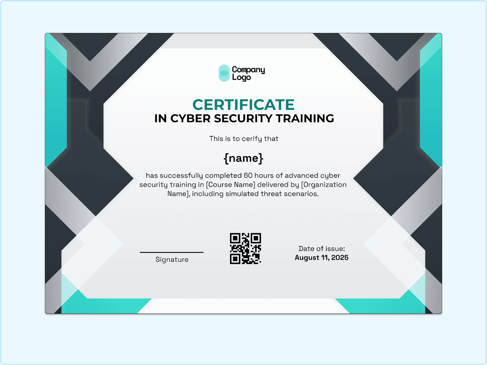 Design also plays an important role in how a certificate is perceived. Clean, well-structured layouts tend to inspire more confidence than flashy or overly decorative designs. In cybersecurity especially, simplicity and clarity matter. A serious, professional look reflects the responsibility that comes with handling security-related work.