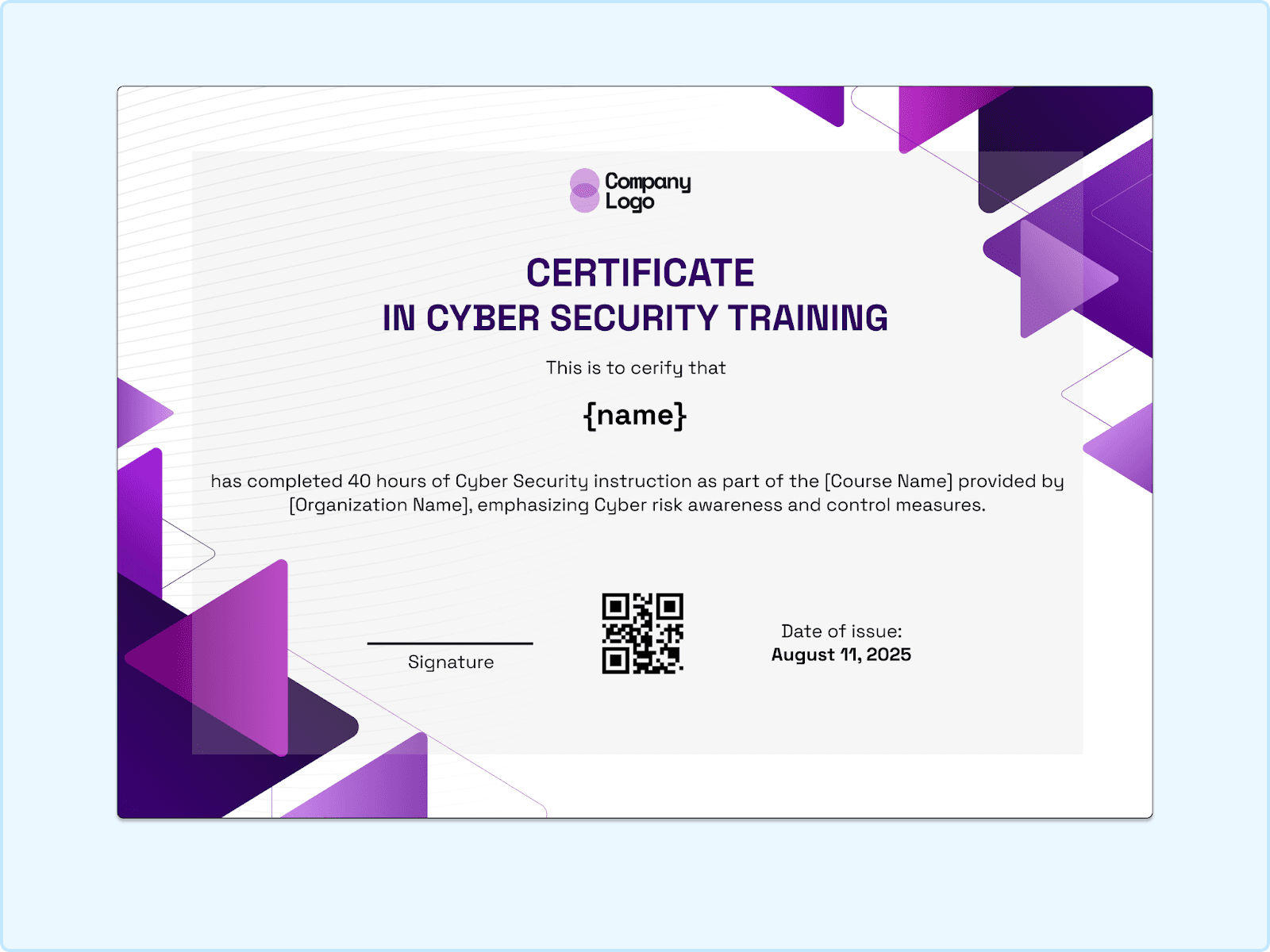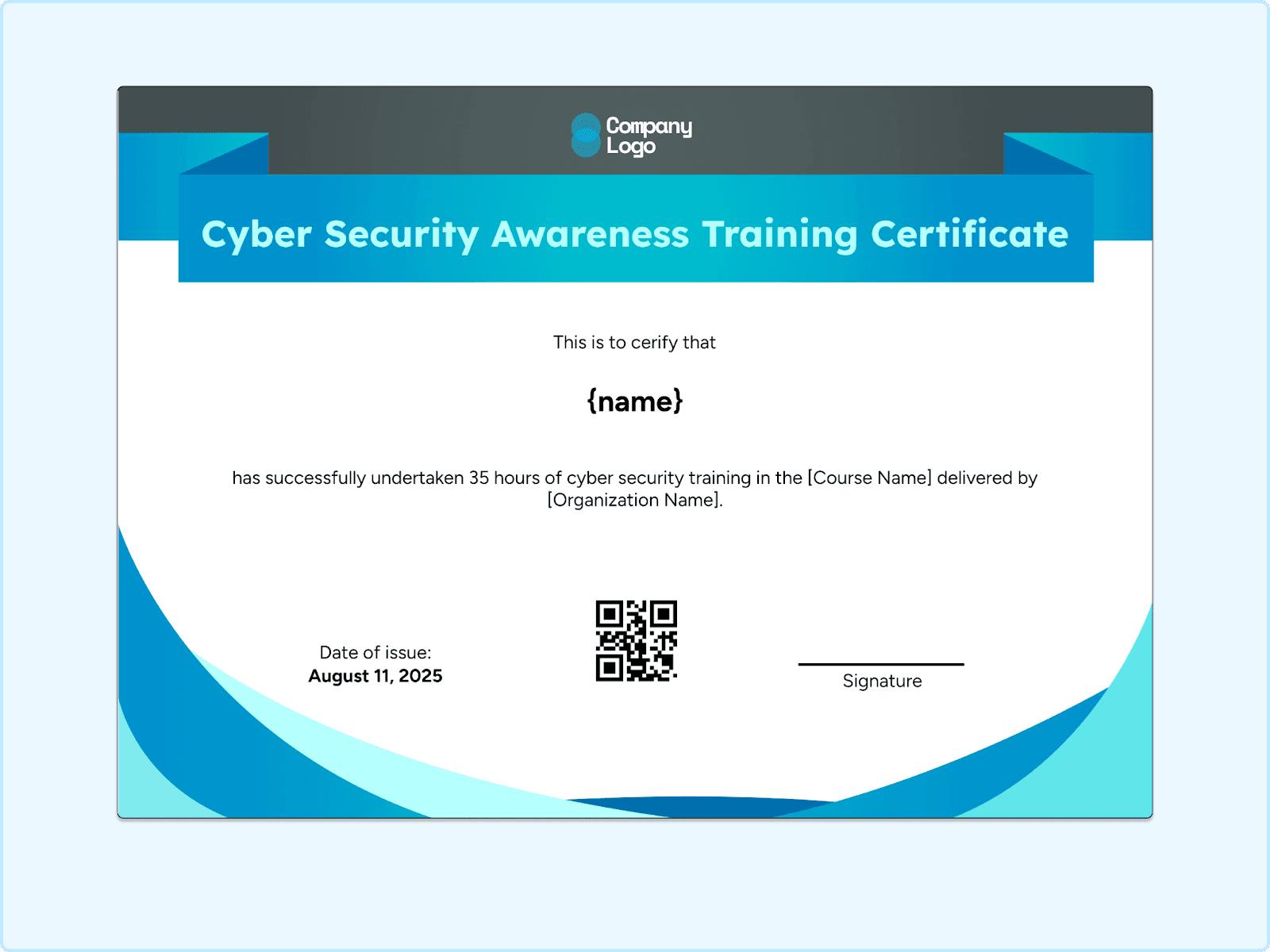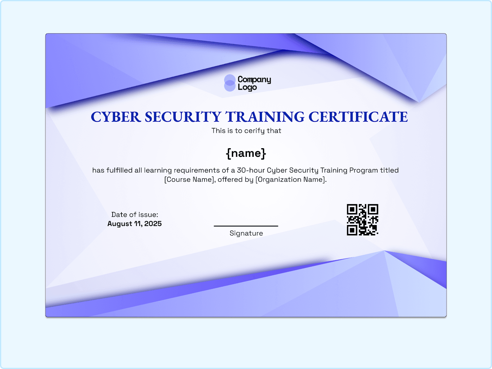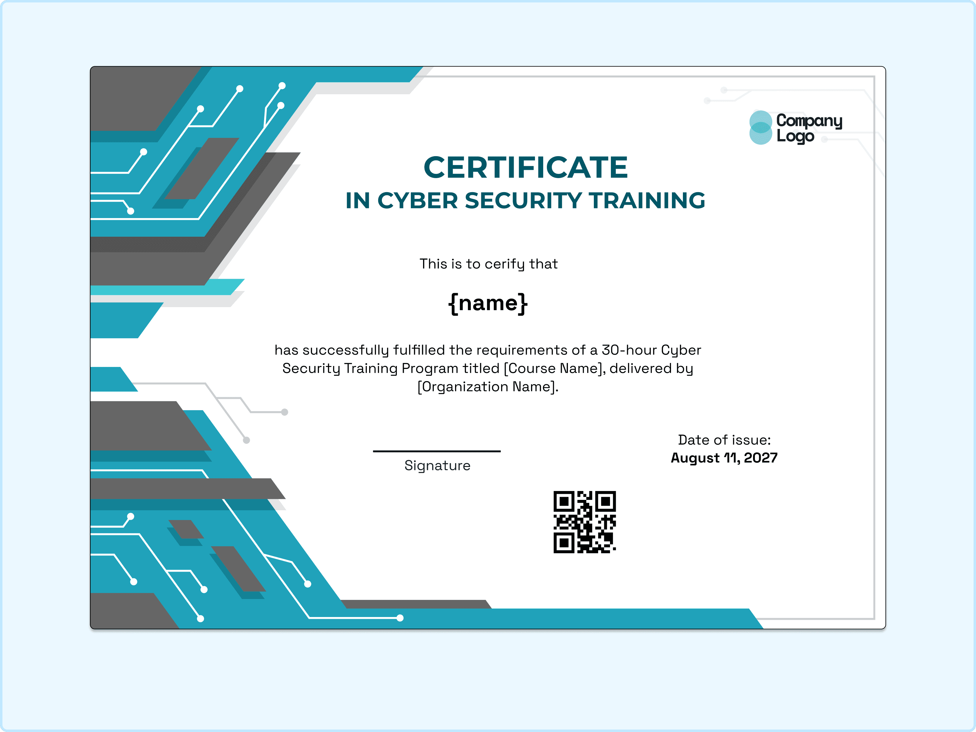 Design also plays an important role in how a certificate is perceived. Clean, well-structured layouts tend to inspire more confidence than flashy or overly decorative designs. In cybersecurity especially, simplicity and clarity matter. A serious, professional look reflects the responsibility that comes with handling security-related work.