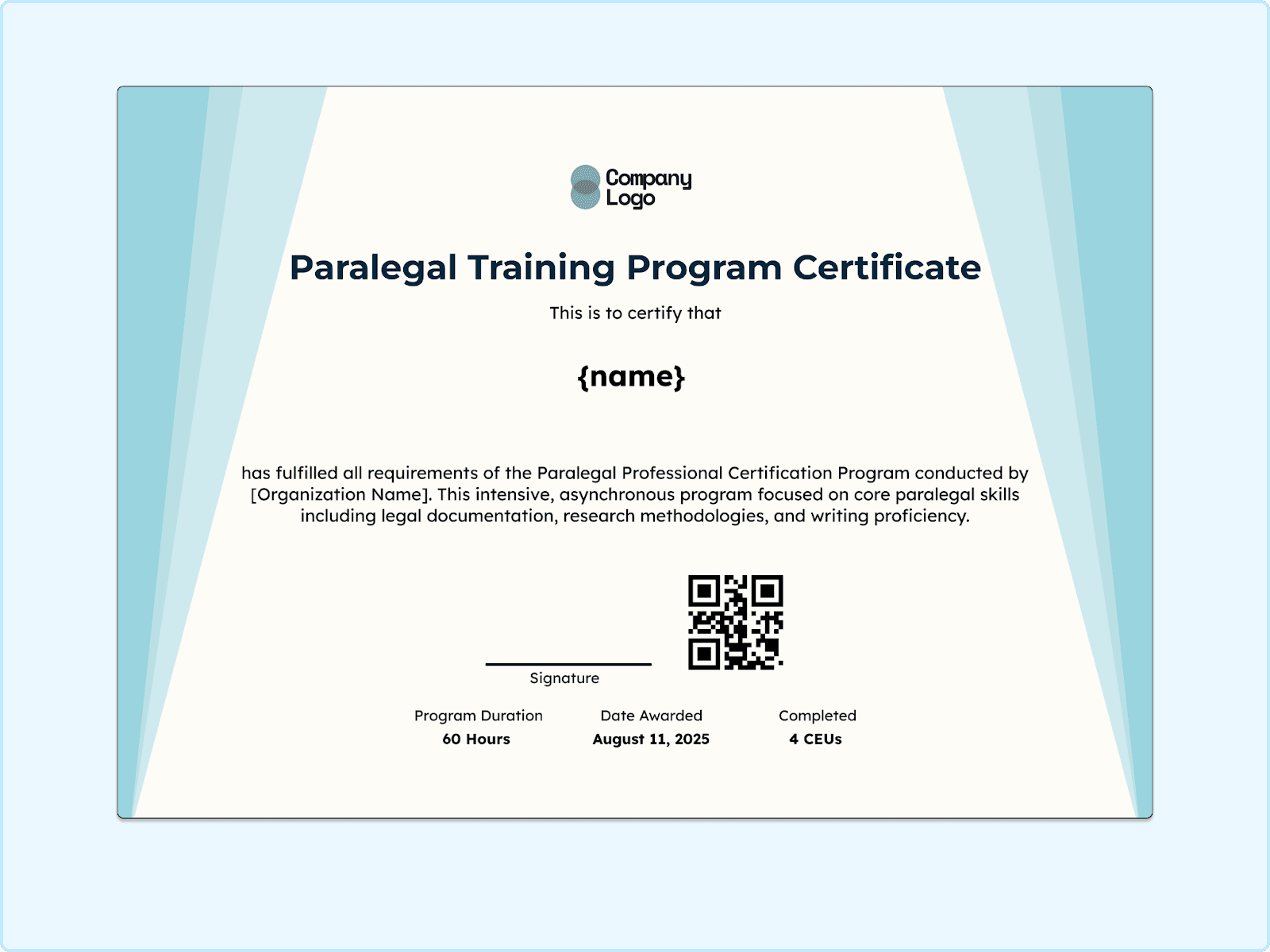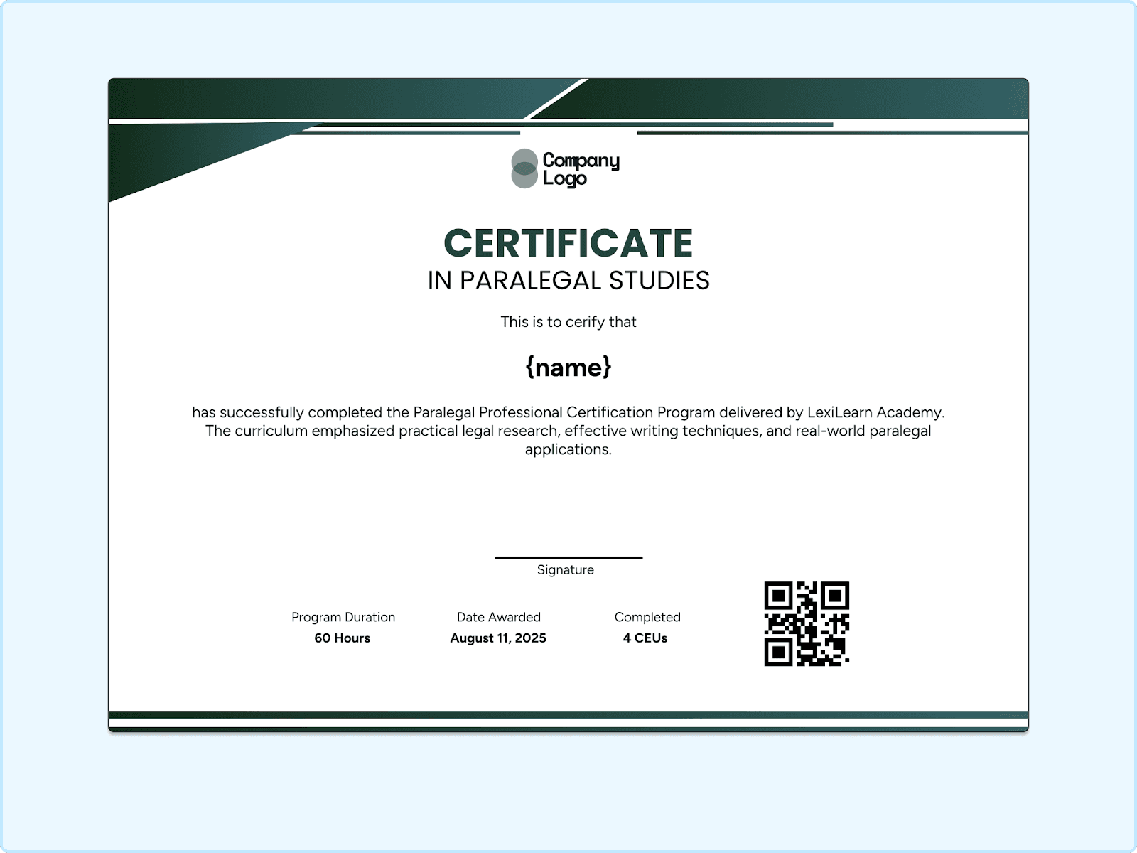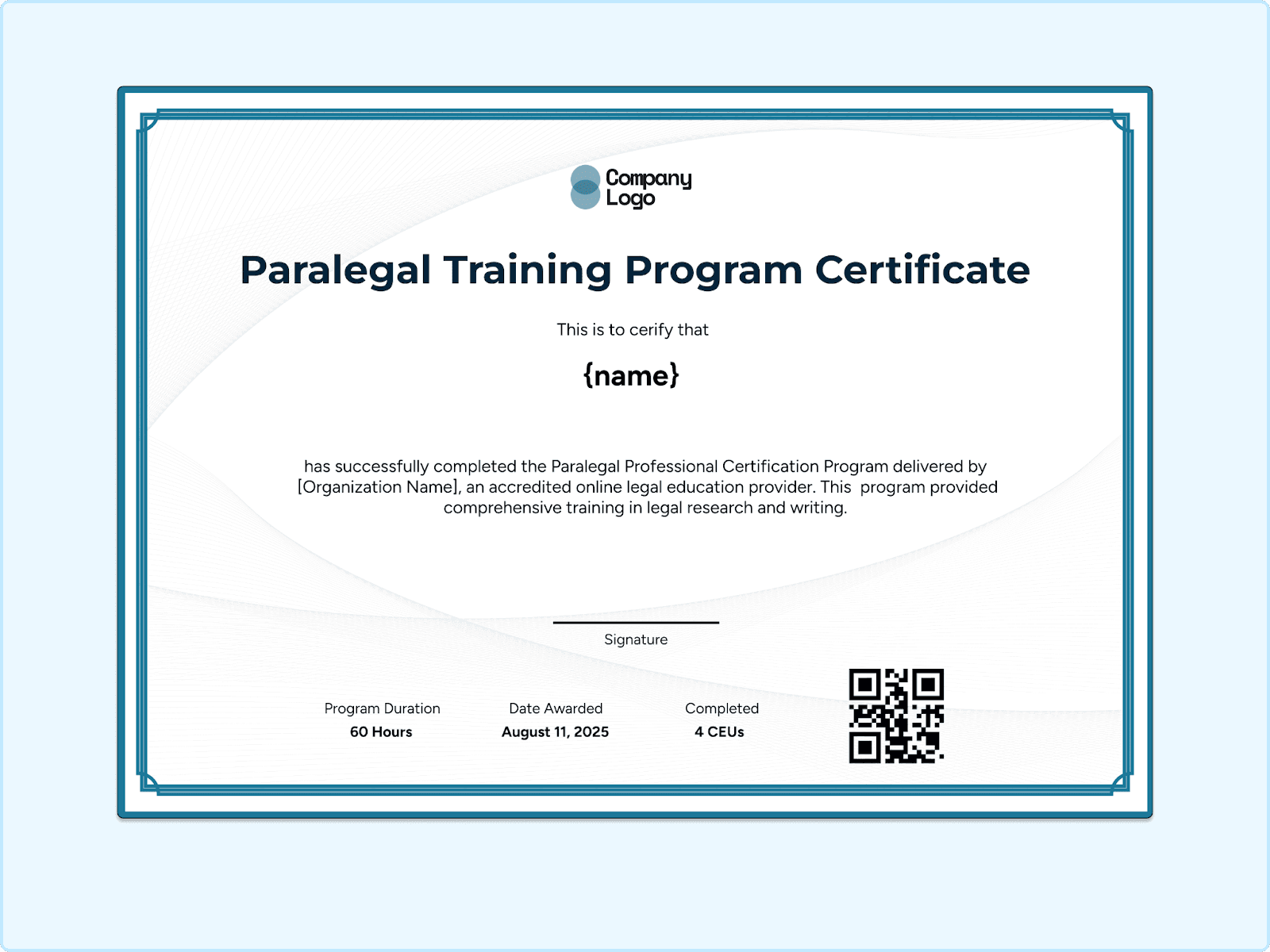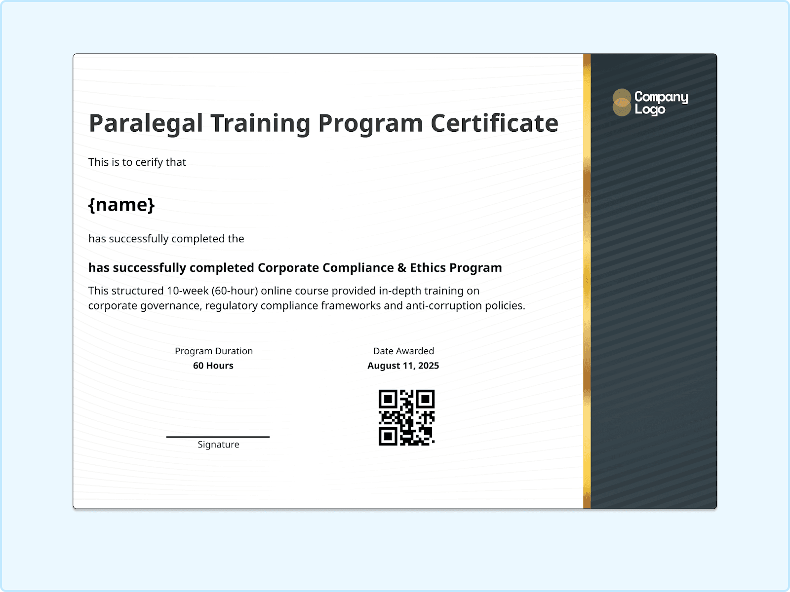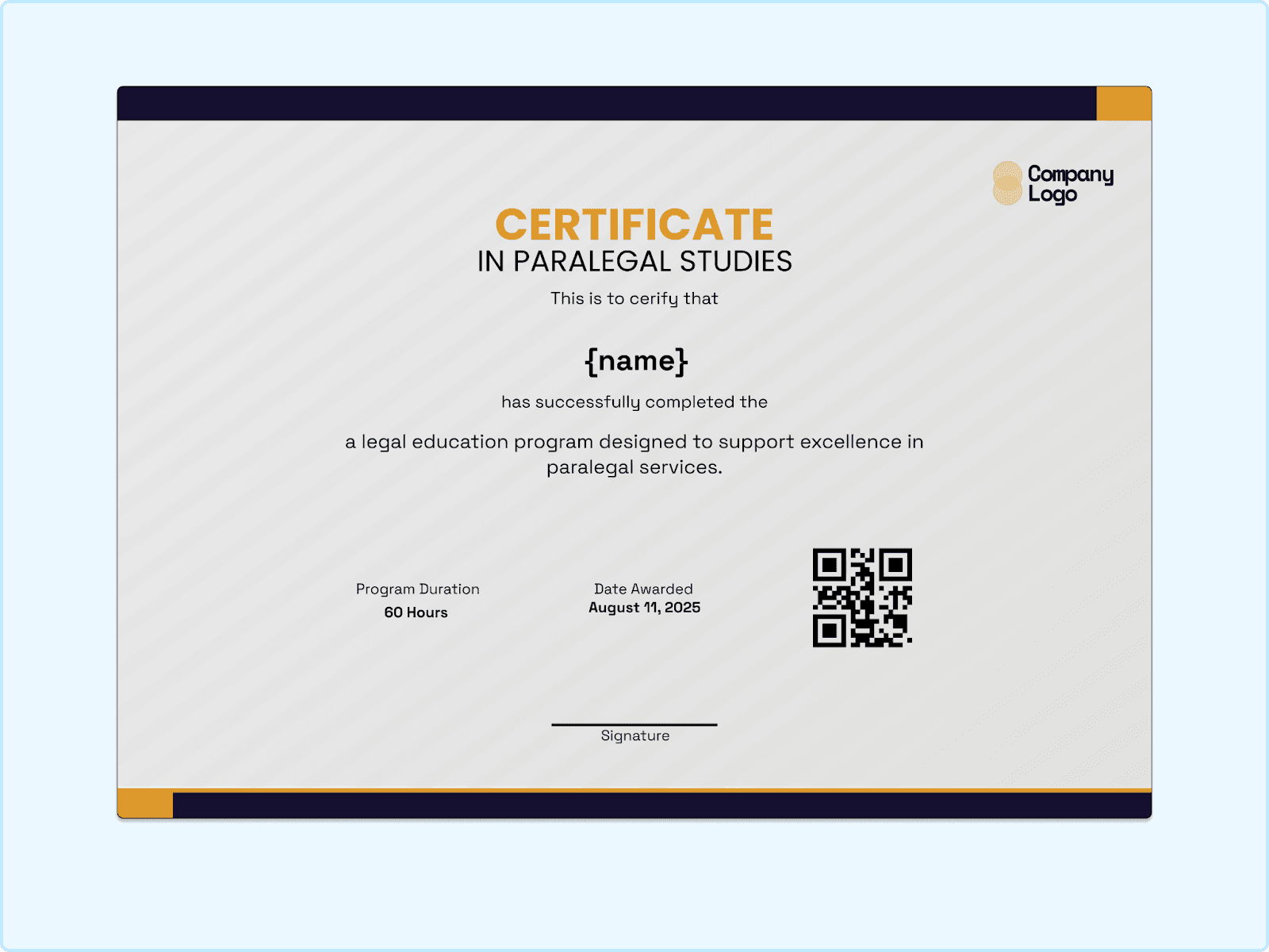 Recognition in the legal field should reflect the values it stands for: integrity, consistency, and trust. A well-crafted paralegal certificate does exactly that. It shows appreciation while maintaining the seriousness and credibility expected in legal environments.