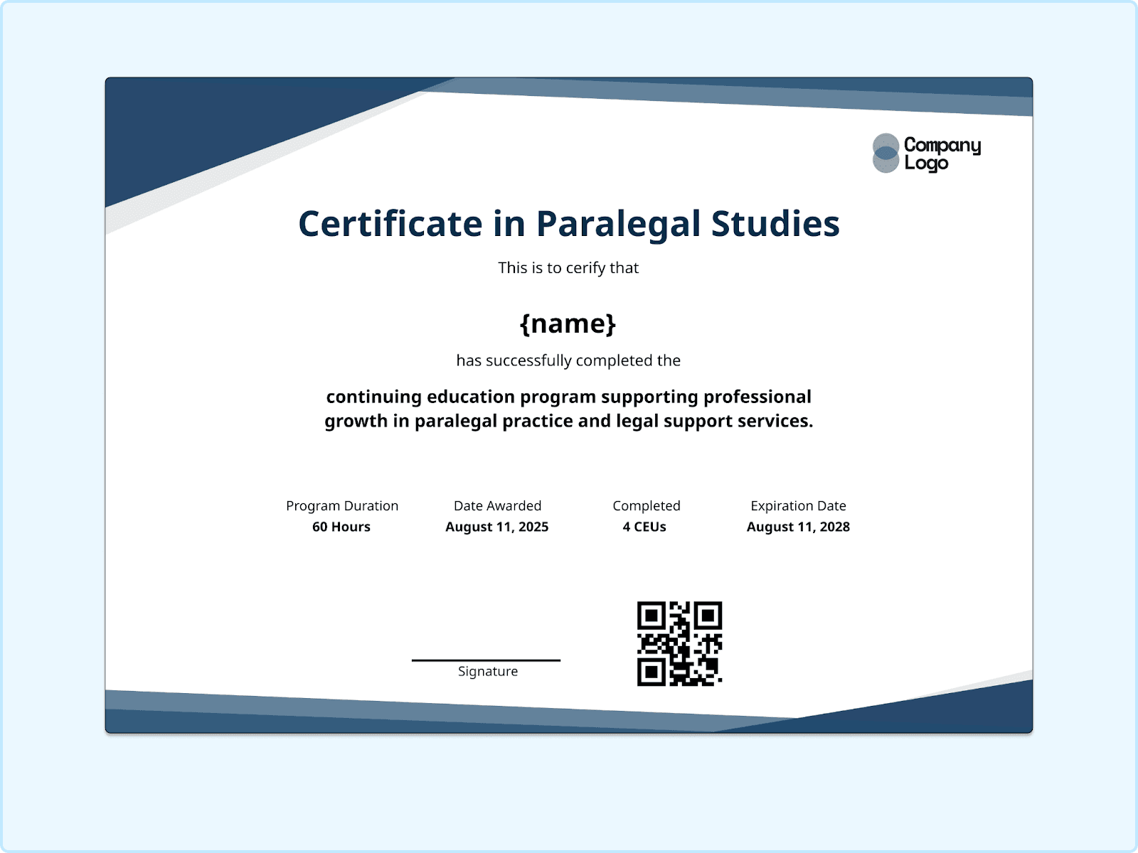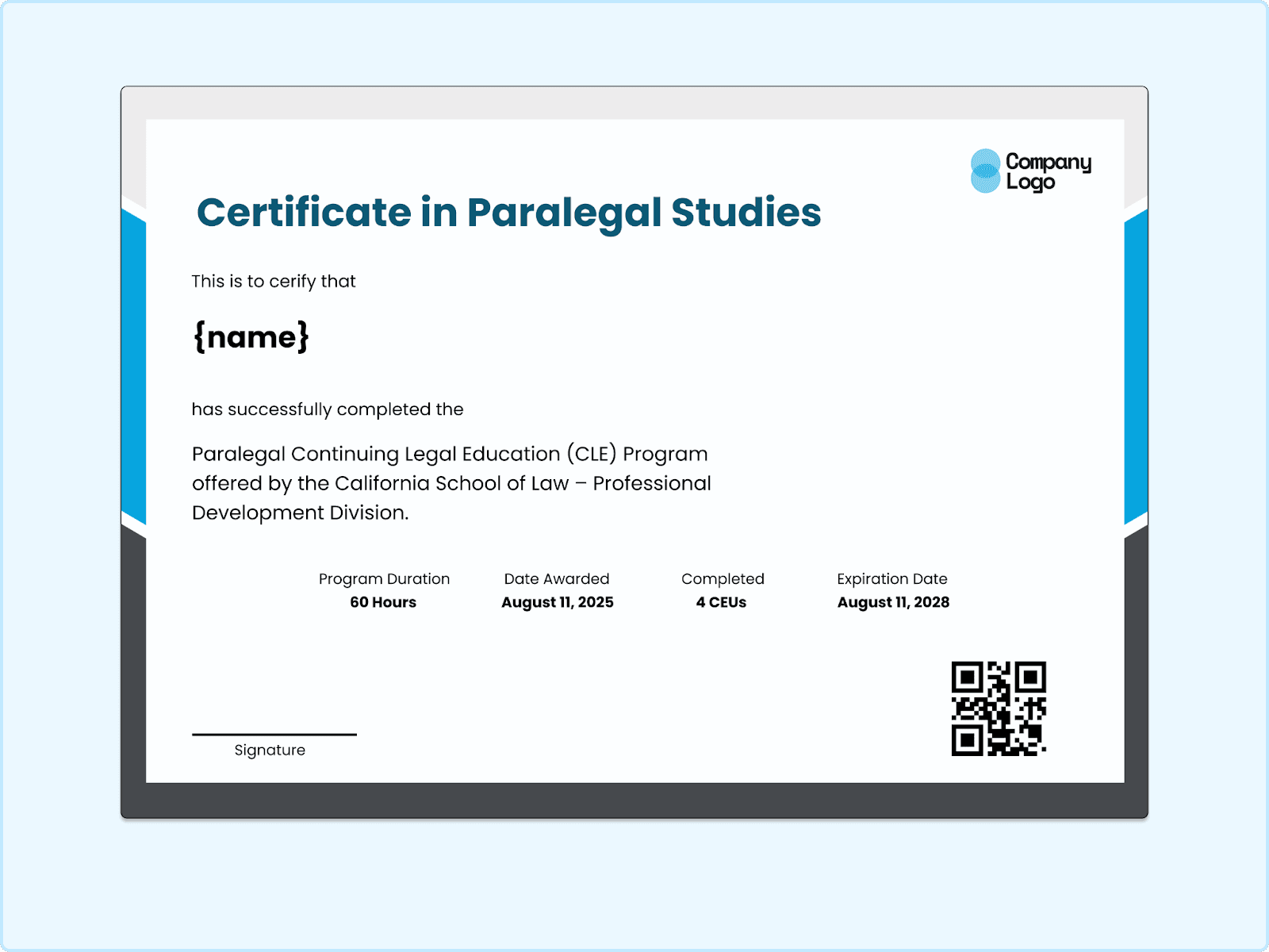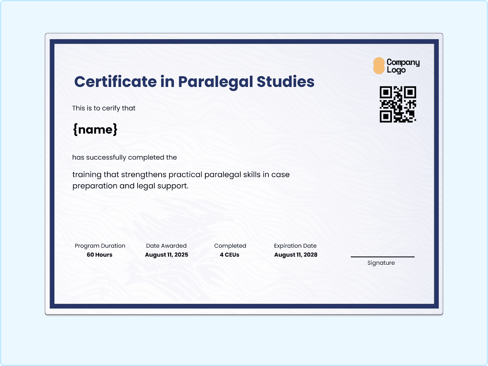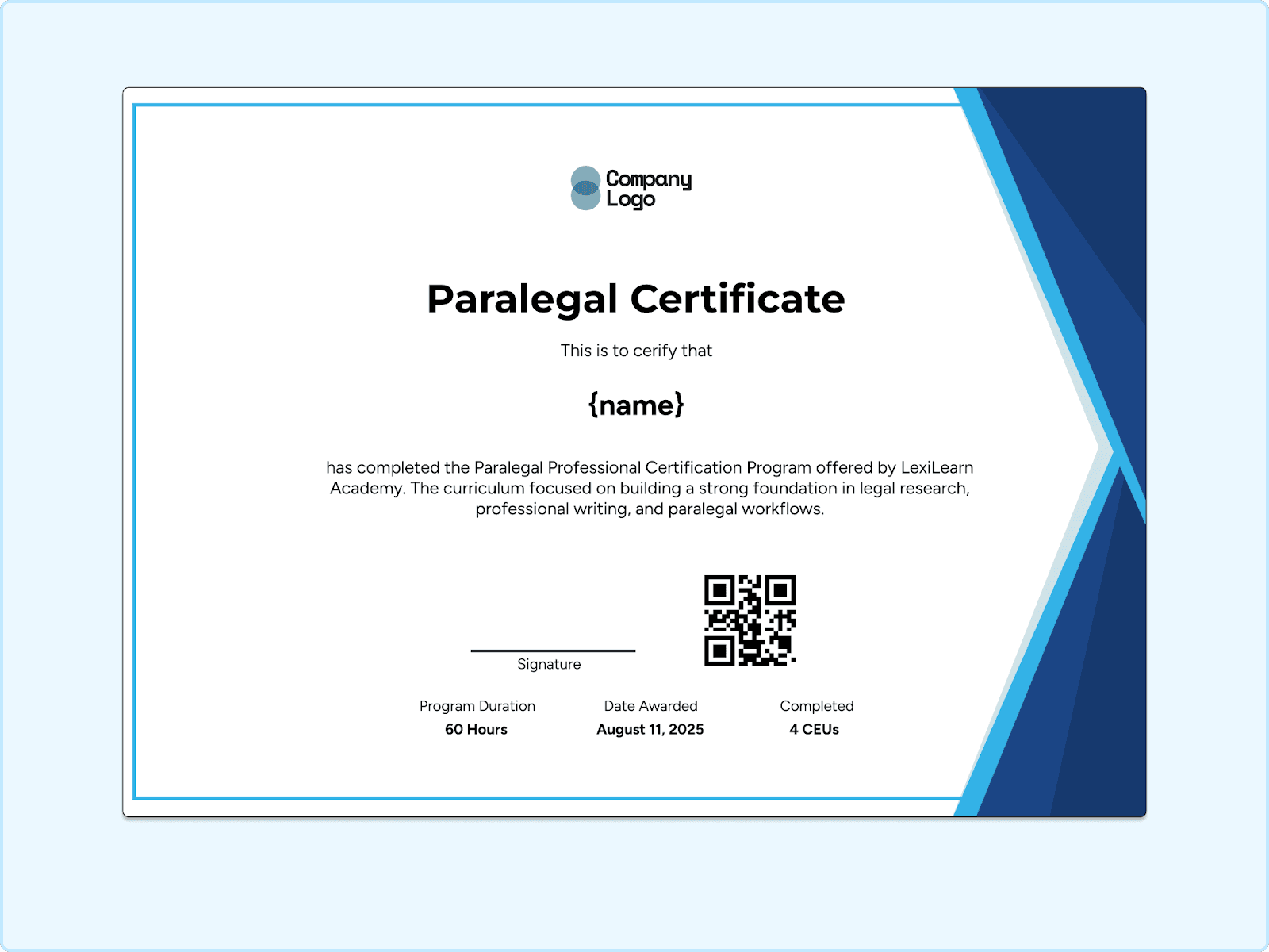 Certificates today are no longer meant to sit quietly in folders or be stored away after issuance. Paralegals increasingly share their credentials on LinkedIn, attach them to digital portfolios, and submit them during job applications, internal reviews, or compliance checks. In a profession where proof and documentation matter, having credentials that are easy to access and share has become an expectation rather than a bonus.
