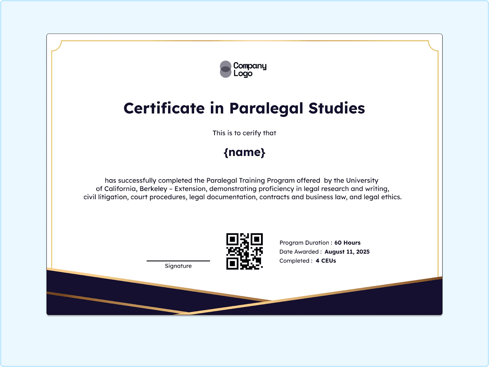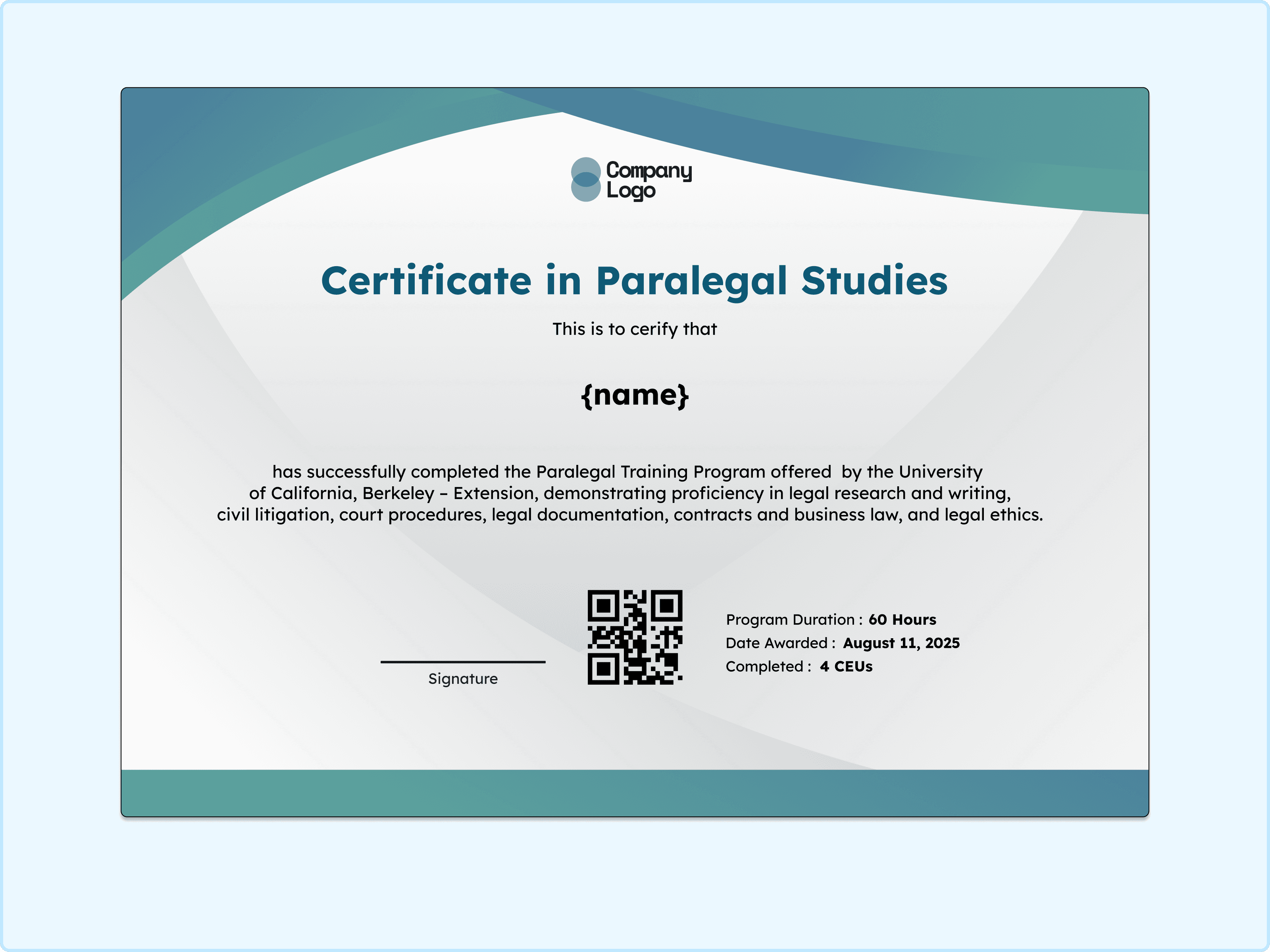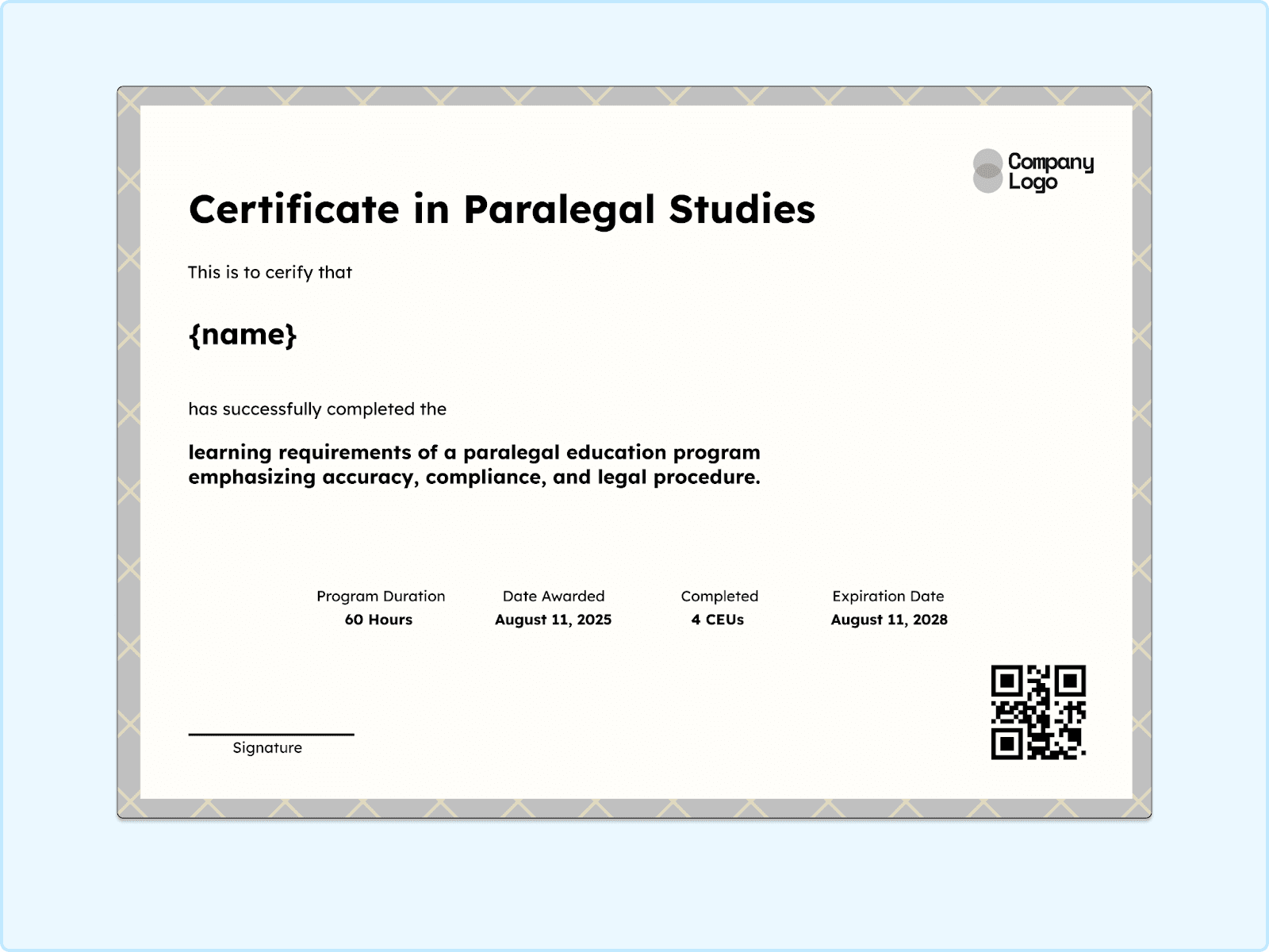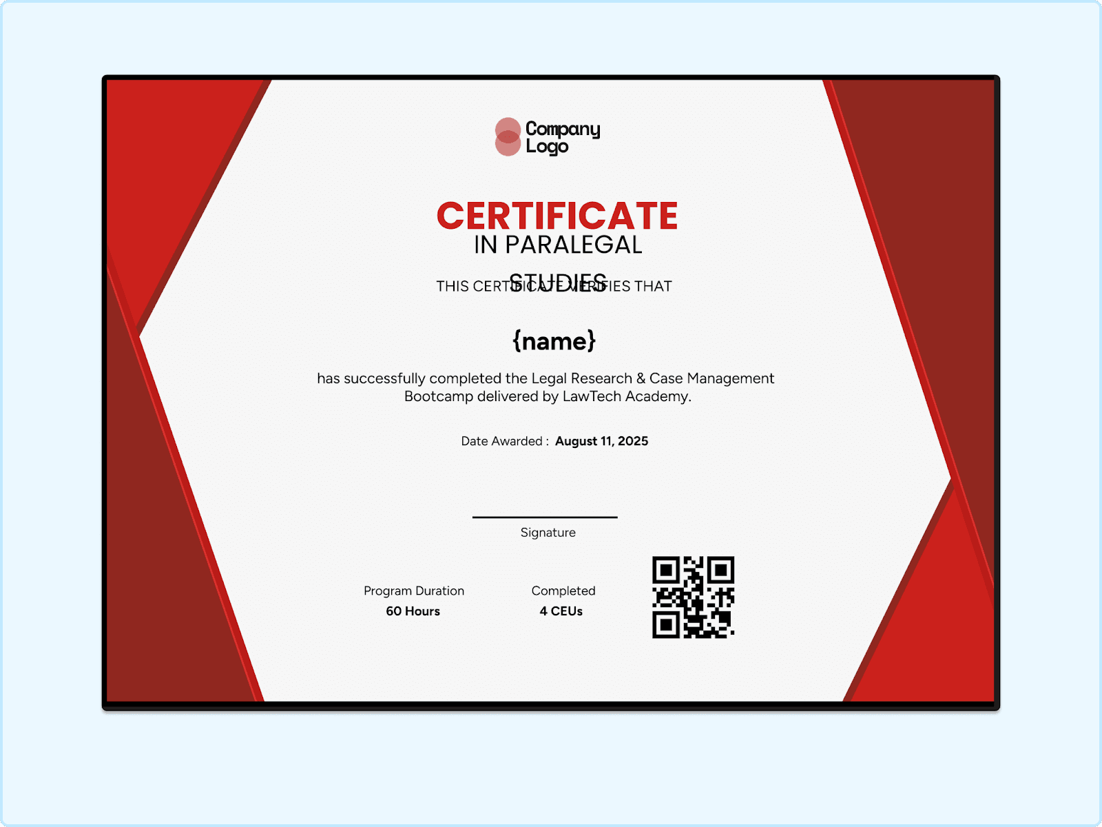 Certificates today are no longer meant to sit quietly in folders or be stored away after issuance. Paralegals increasingly share their credentials on LinkedIn, attach them to digital portfolios, and submit them during job applications, internal reviews, or compliance checks. In a profession where proof and documentation matter, having credentials that are easy to access and share has become an expectation rather than a bonus.