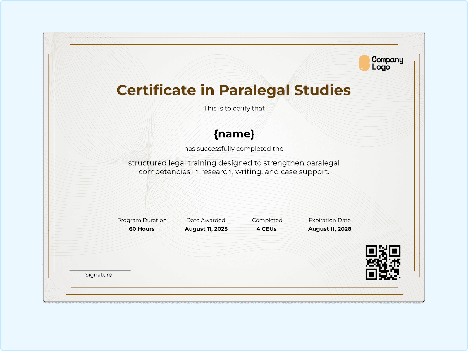 As legal work becomes more structured and accountability-driven, formal recognition matters more than ever. Certificates act as tangible proof of training, experience, and commitment. They help bring clarity to roles, validate skills, and reinforce professional standards in a field where precision and trust are non-negotiable.