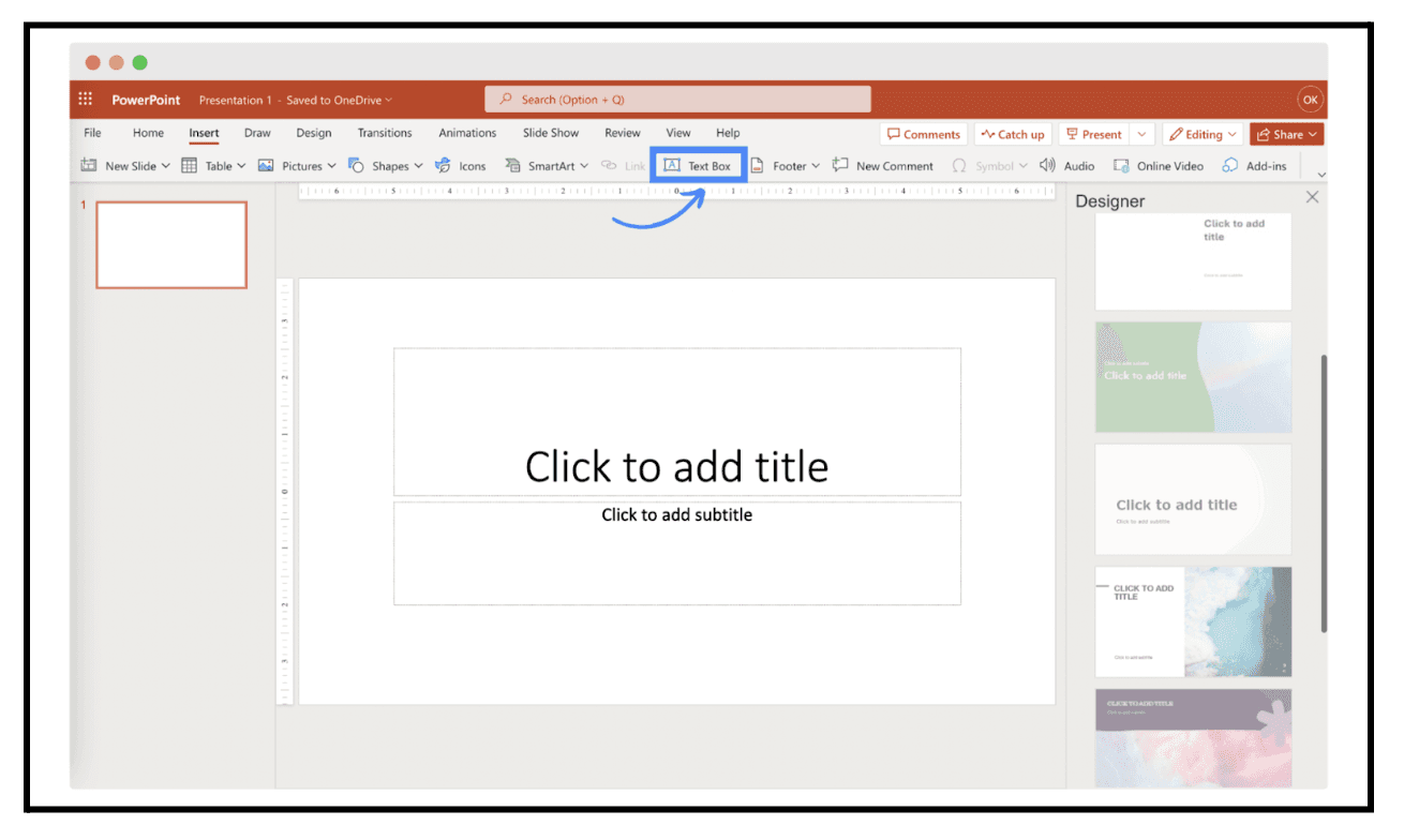 To insert a new text box:
