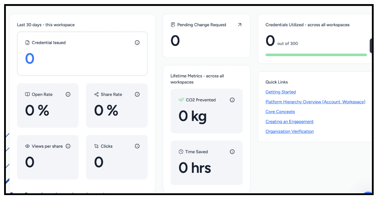 The dashboard gives you a real-time overview of credential activity, including: