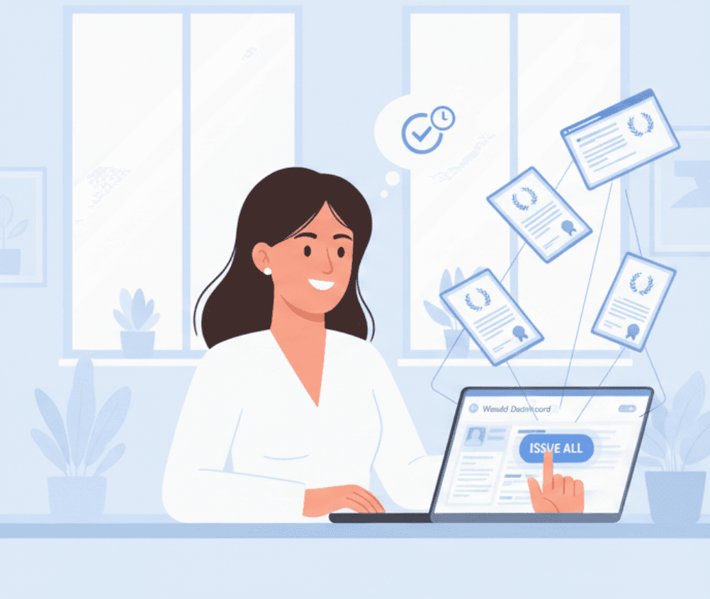 Effortless & Scalable Issuance: Securely issue thousands of unique certificates from a single CSV file in one click with bulk issuance. Need to award a single person? Instant issuance lets you create and send a one-off certificate in seconds.
