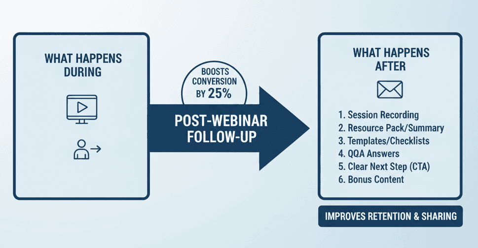 What happens after your webinar matters just as much as what happens during it. A structured follow-up helps people retain what they learned and builds stronger connections. Prompt follow-ups can increase conversions by as much as 25%.