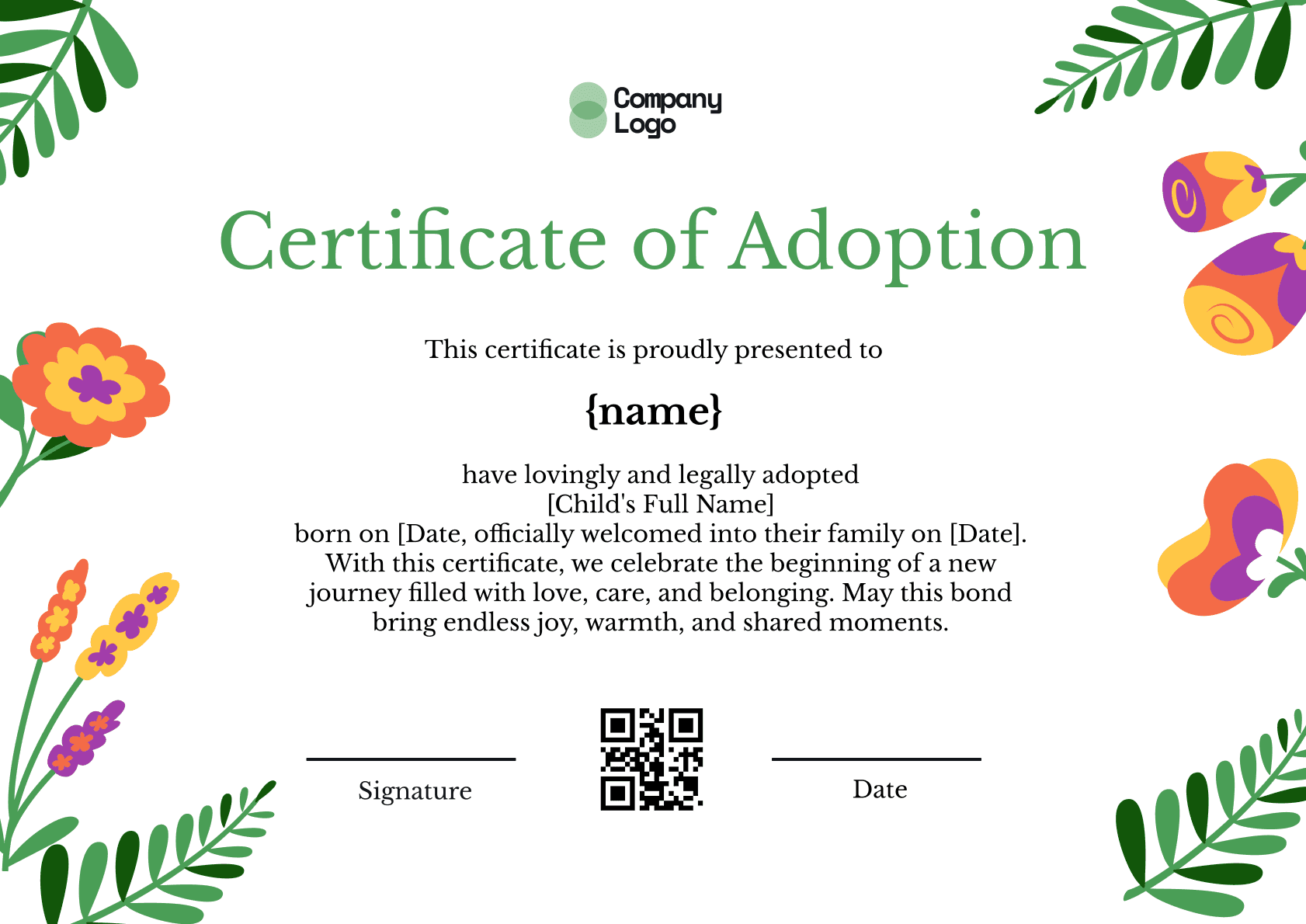 Elegant Adoption Certificate Template