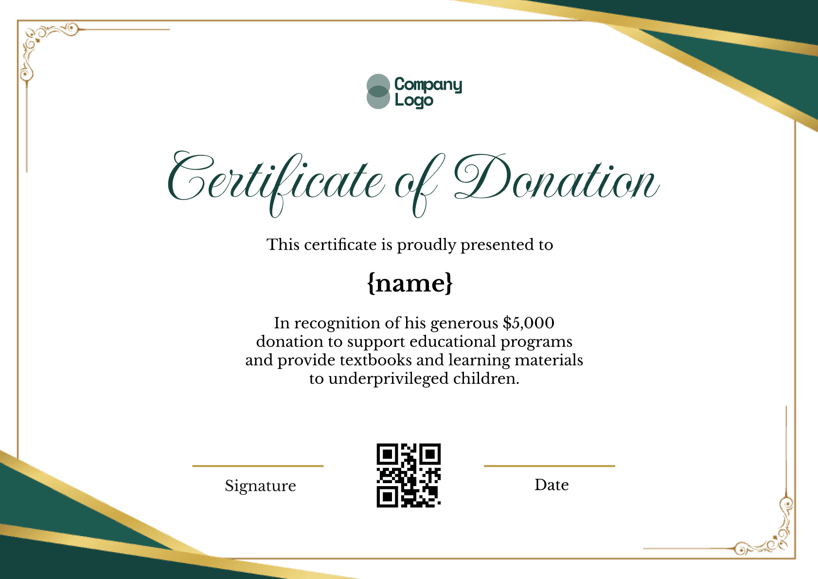 A classic, highly formal donation certificate featuring an intricate, currency-style border. Ideal for noblehearted donations and significant charitable endowments. Fully customizable for professional recognition on Wauld.