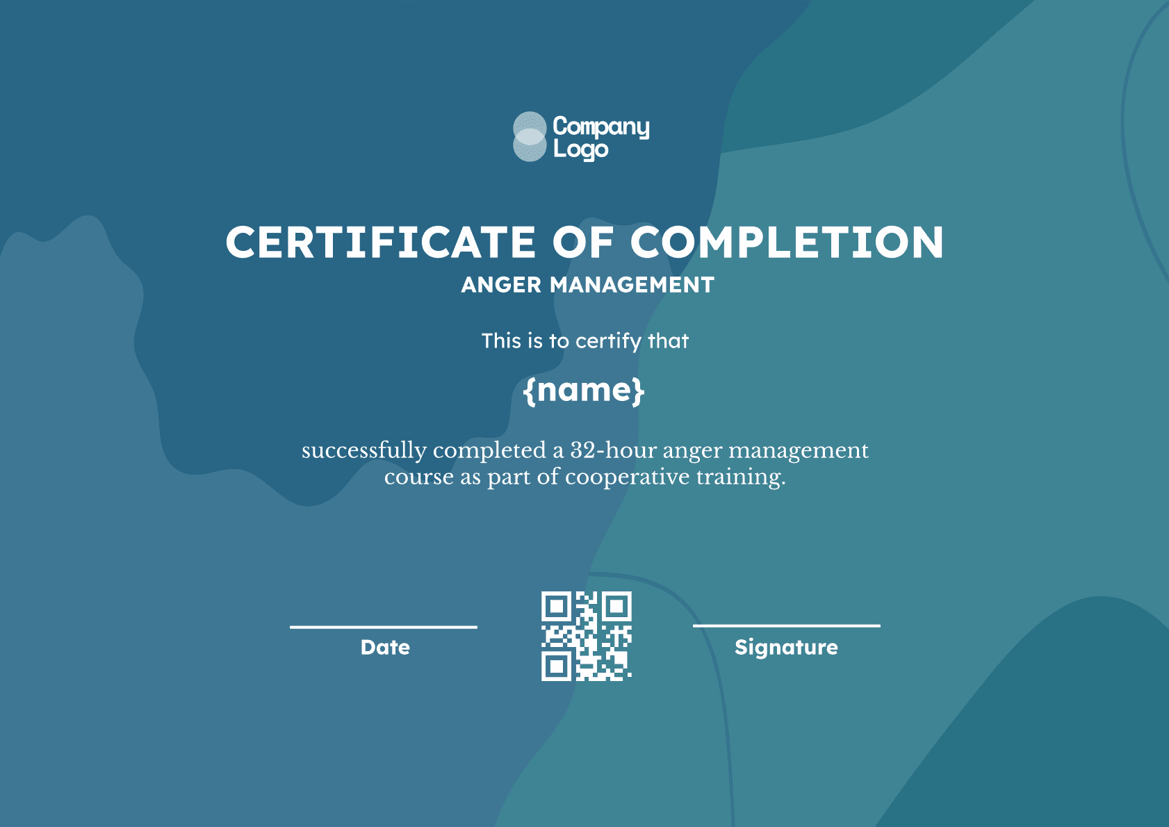 Issue professional, fully customizable certificates on Wauld for Cyber Defense. This bold navy and cyan template features secure QR verification and tracking for 60-hour advanced training programs.