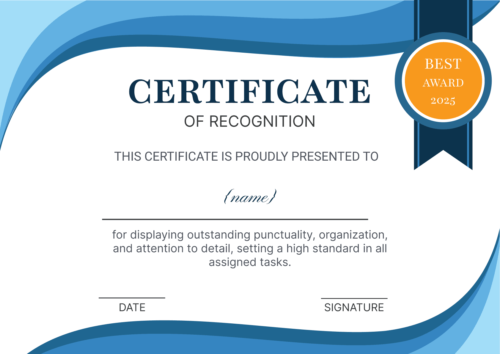 This template offers a clean, contemporary holiday charm with a bold red and green striped border that conveys a festive "candy cane" feel. Accented with floating golden stars, the cream central canvas provides a professional space to celebrate an employee's "efforts and positive spirit." It is a balanced design that feels both traditional and fresh, ideal for a bright start to the new year.