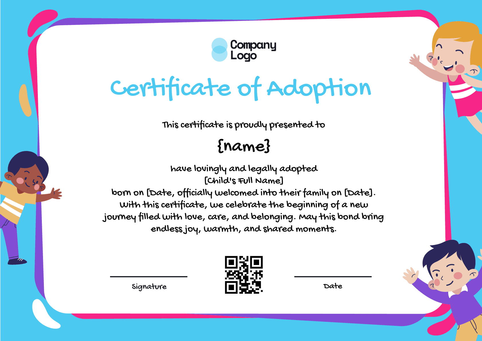 Issue a professional, customizable Christmas certificate on Wauld. This blue starry-night template features a modern Santa illustration and secure QR tracking for celebrating commitment.