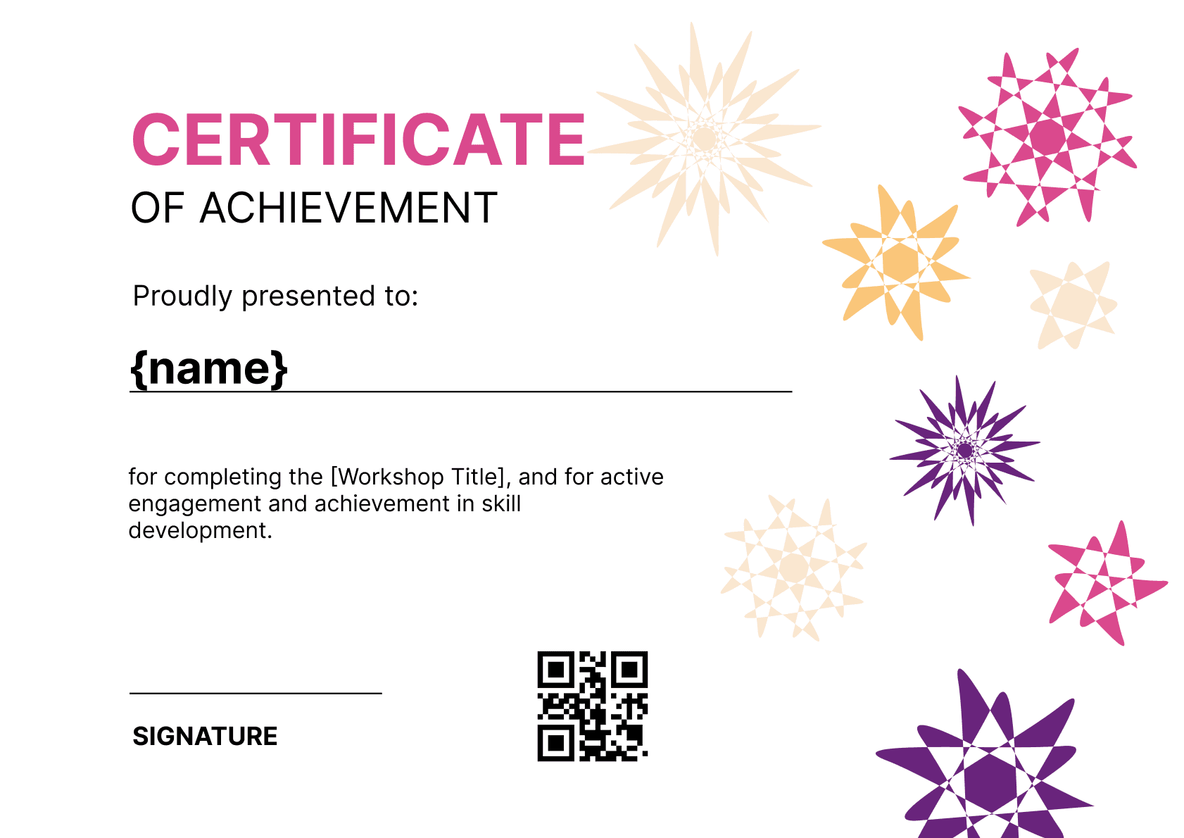 A QR code can be placed in the lower section for digital verifications, certificates of attendance, or linking feedback forms. Despite its straightforward design, this template doesn’t compromise on quality,it offers space for customization while maintaining a neat, polished appearance ideal for serious programs.