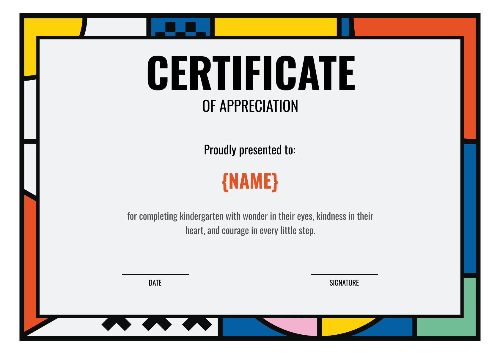 The vivid colors are balanced by a clean white background, which ensures all text remains readable. With a QR code embedded for digital verification, this layout bridges informal design with functional professionalism. The template allows easy customization for names, logos, dates, and other key details.